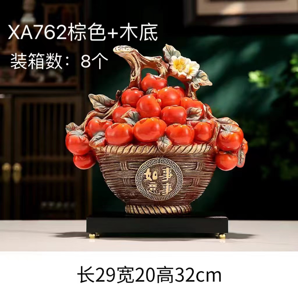 型号:摆件-XA762棕色+木底(柿柿如意)